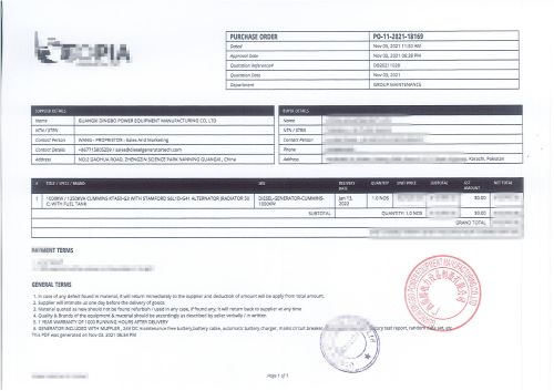 - 肯尼亞客戶與我公司簽訂一臺50KW玉柴發(fā)電機(jī)組配靜音箱合同 2022-03-04